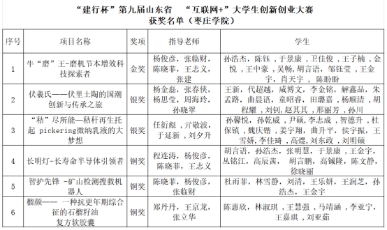 近日,在第九届山东省“互联网+”大学生创新创业大赛决赛中,永利官网参赛团队共夺得山东省金奖1项、银奖2项、铜奖3项,实现了在高教主赛道、“红旅”赛道的多点开花,并实现了在此项赛事中的新突破。