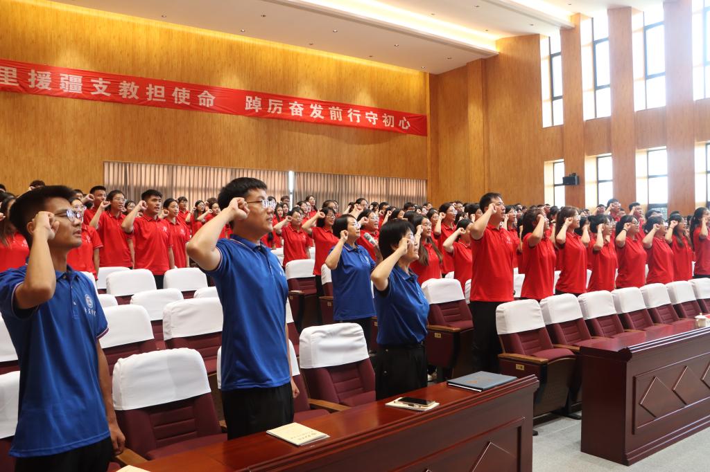 在何芳带领下,援疆实习支教师生进行集体宣誓。