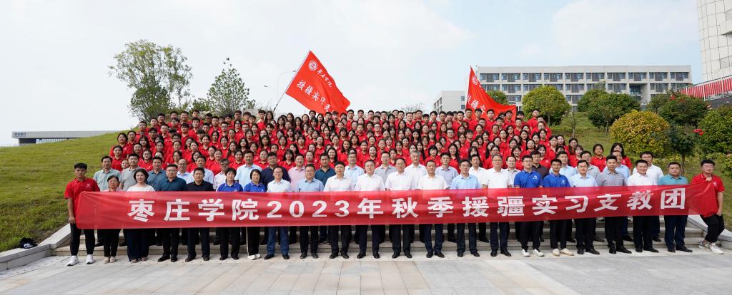 文学院院长张爱民代表支教团派出学院发言,希望支教团全体师生切实担负起立德树人使命,发扬“枣院精神”,以积极饱满的热情和认真负责的态度,把教学和管理工作抓实、抓细、抓好,用激扬的青春和奋斗的汗水谱写“大美枣院”的光荣与梦想。支教团团长何芳代表带队教师发言,表示将不负重托,肩负起援疆支教工作的责任与使命;不负期待,履职尽责,圆满完成教书育人工作;不负韶华,团结互助,将支教团打造成为一个积极向上、团结奋进的战斗集体。外国语学院王修俊代表支教团学生郑重承诺,将会坚定政治方向,自觉遵守国家民族政策,以争做“四有”好老师为目标,在支教实践中磨炼意志、完善自我、坚守初心,以青春的力量书写时代新篇章。
