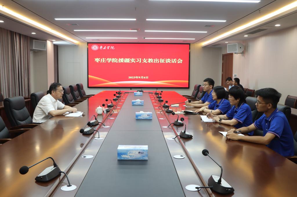 9月6日下午,永利官网在薛城校区崇德楼报告厅举行2023年秋季援疆实习支教出征仪式。校党委书记高峰出席并讲话,校领导李文喜、李目海、路绪剑、丰雷、安涛、张昌林、林勇出席仪式。办公室、团委、教务处、学生工作处、招生就业处、计划财务处、保卫处等部门负责人,相关二级学院党总支书记以及2023年秋季援疆实习支教团全体师生共300余人参加活动。仪式由校党委副书记、校长李文喜主持。