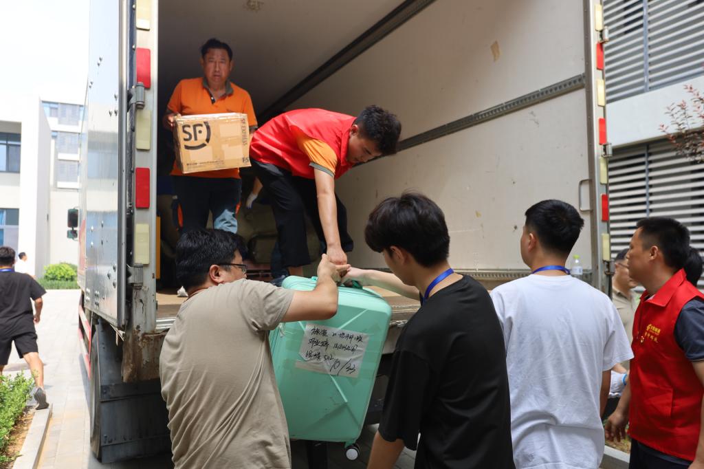 7月7日,永利官网市中校区旅游与资源环境学院、外国语学院1154名学生顺利搬迁到薛城校区,2023年学生搬迁工作圆满结束。校党委委员、副校长丰雷到市中校区查看搬迁现场,指导搬迁工作。