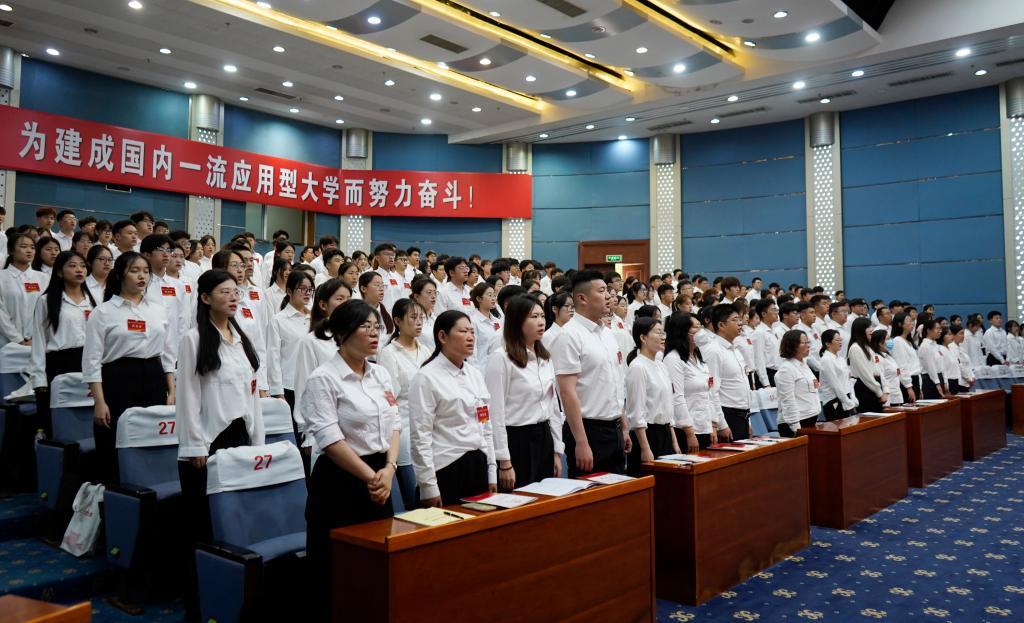 6月25日上午,永利官网在综合楼学术报告厅召开第六次学生代表大会,校领导丰雷、张昌林、林勇,共青团枣庄市委副书记颜蔚然出席大会开幕式。学生工作处、校团委负责人,各二级学院团总支书记、学生代表、列席代表共400余人参加大会。