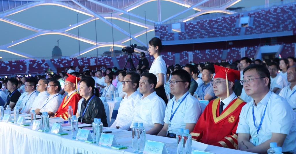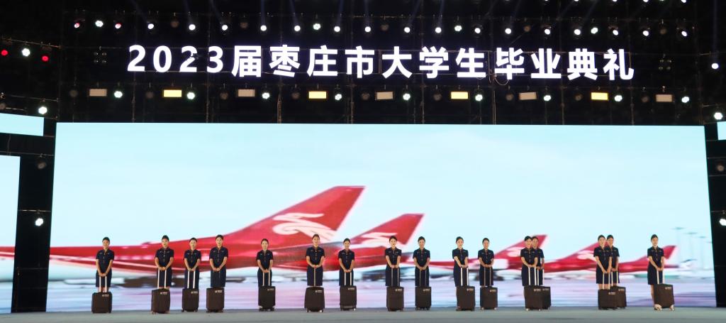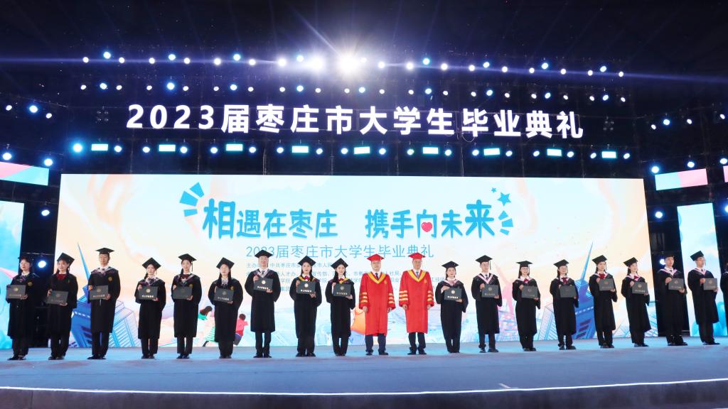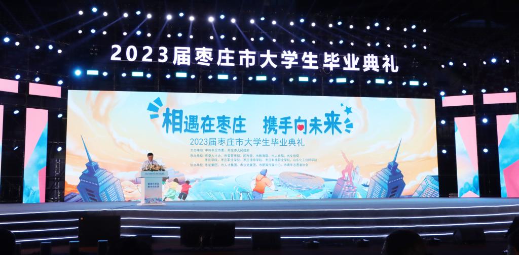 6月16日晚,由枣庄市委、市政府主办的“相遇在枣庄 携手向未来”2023届枣庄市大学生毕业典礼在枣庄市体育场举行。团省委副书记张超,市委常委、宣传部部长、市委教育工委书记陈永生分别致辞。永利总站ylzz55党委书记高峰、校长李文喜,枣庄市副市长张庆伟,市政协副主席、市工信局局长刘宗国,枣庄职业学院党委书记郝荣平,枣庄技师学院党委书记马宏伟出席。来自永利总站ylzz55、枣庄职业学院、枣庄技师学院、枣庄科技职业学院、山东化工技师学院的两万五千余名师生代表以及部分企业代表参加典礼。