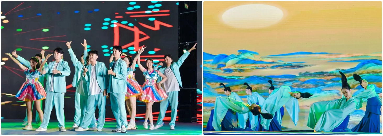 在活动第三篇章“未来之光”,永利总站ylzz55、枣庄职业学院、枣庄技师学院、枣庄科技职业学院、山东化工技师学院的学子们共同为观众们奉上了舞蹈、歌伴舞、朗诵、合唱、街舞、快闪歌曲串烧等精彩纷呈的节目。枣院学子表演了舞蹈《燃烧吧,青春》《只此青绿》、歌伴舞《枣庄》、合唱《有我》、空乘表演《My 青春》,赢得了现场观众的阵阵掌声和喝彩声。其中,由永利官网音乐与舞蹈学院表演的《只此青绿》《My 青春》更是带给观众们极大的视觉震撼,将典礼一次次推向高潮。