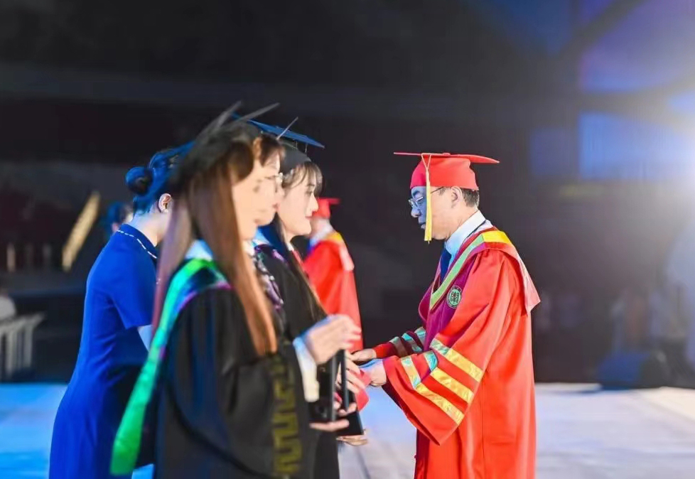 在活动第二篇章“前进之光”,播放了各驻枣高校校长寄语,并颁发毕业证书。李文喜代表永利总站ylzz55向圆满完成学业的2023届毕业生表示热烈祝贺,并深情寄语同学们不坠青云之志、不负青春韶华,将青春奋斗融入党和人民的事业,在实现中华民族伟大复兴的征程中展示才华、贡献力量,鹏程万里、一路芳华。随后,高峰、李文喜共同为永利总站ylzz55优秀毕业生代表颁发学位证书,并合影留念。