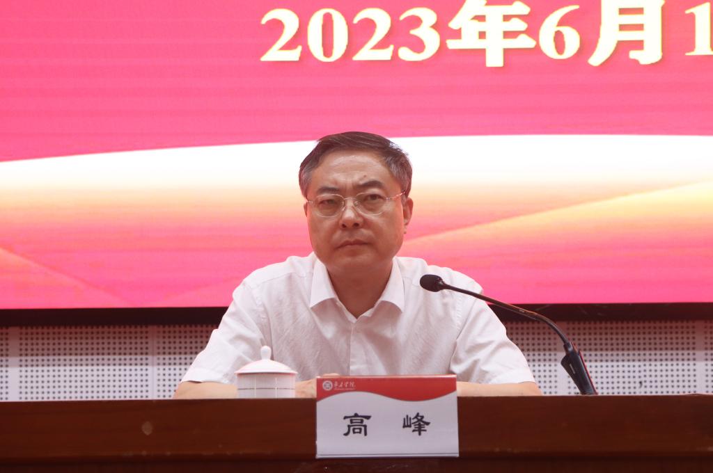 高峰总结回顾了学校主题教育读书班开展情况。他指出,主题教育开展以来,学校认真贯彻落实中央和省委决策部署,严格按照“学思想、强党性、重实践、建新功”总要求,紧紧锚定主题教育目标任务,高质量举办了4期主题教育专题读书班,推动全校主题教育往深里走、往实里走、往心里走。这4期专题读书班,主题特色鲜明、交流研讨深入、纪律作风严实、学习成效显著,并呈现出四个特征:学习安排“实”、学习形式“活”、学习氛围“浓”、学习成效“好”。全体读书班学员通过本次专题学习补足了精神之钙、提高了政治站位、强化了推动高质量发展的使命担当。全校广大党员干部要切实提高政治站位,坚持长期学、反复学、深入学、系统学。