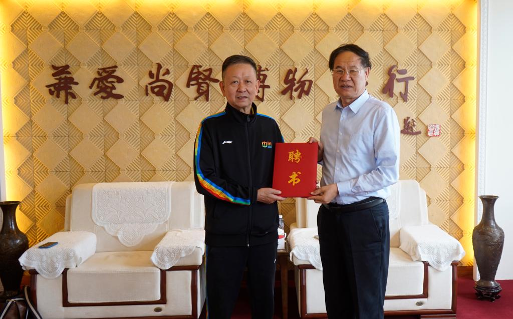 为进一步加强永利官网体育工作,推动体育学科专业建设,提升体育人才培养质量和教育教学水平,5月29日下午,永利官网举行特聘教授聘任仪式暨学术报告会,聘请前国家乒乓球队任国强教练担任永利官网客座教授。校党委副书记、校长李文喜在综合楼八楼会议室热情接待了任国强教授并为其颁发聘书,校党委委员、副校长安涛及相关部门单位负责人参加座谈。