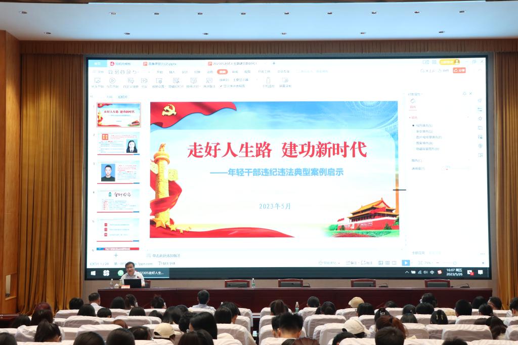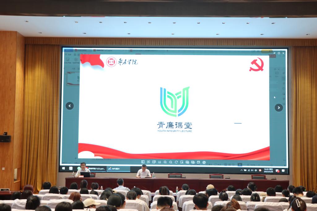 为深入学习贯彻习近平总书记关于青年工作重要论述,进一步加强校园廉洁文化建设,筑牢大学生拒腐防变底线,全面落实立德树人根本任务,帮助毕业生系好廉洁从业的“第一粒扣子”,根据省纪委《省属本科高校“青廉课堂”管理办法》要求和学校纪委工作安排,5月26日下午,永利官网在薛城校区崇德楼报告厅举办2023届毕业生“青廉课堂”活动。学生工作处、招生就业处等部门负责人、部分二级学院毕业生代表300余人参加活动。