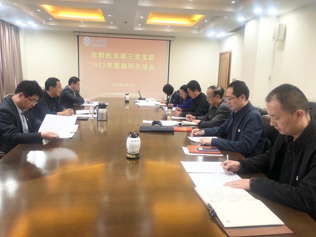 3月8日,党委副书记、校长李文喜参加食品科学与制药工程学院教工第一党支部2022年度组织生活会。会上,党支部书记对会议准备情况、会议主题、会议议程及要求作简要说明,并代表班子作检视剖析发言。随后,支委班子成员依次作检视剖析发言,并相互提出批评意见,党员分别进行自我批评和剖析发言。会上还对党支部班子、班子成员和党员进行民主评议。