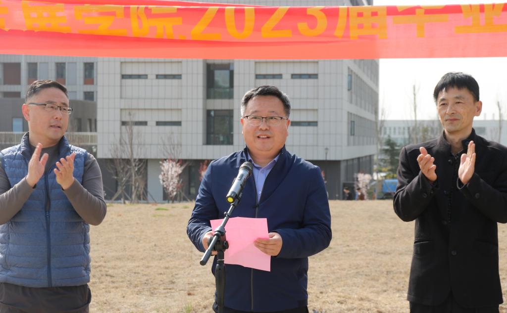 2019级学生任金存代表毕业生发言,表达了对母校的感恩之情和对未来的美好憧憬。活动现场,老师们和同学们一起挥揪挖土、扶苗种树、填土浇水,并为毕业树挂寄语牌,系祝福红丝带,氛围轻松愉快。