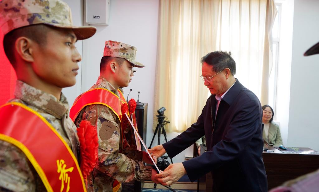 李文喜在讲话中对同学们通过层层选拔成为预征新兵表示祝贺,并代表学校提出三点希望:一是要做一名忠于党、忠于祖国的好战士,圆满完成党和人民赋予的使命和任务。要时刻牢记习近平总书记提出的“建设一支听党指挥、能打胜仗、作风优良的人民军队”的总体要求,热爱伟大祖国,胸怀忧国忧民之心、爱国爱民之情,不断奉献祖国、奉献人民、奉献军队;要心怀担当,开拓进取,在实现中华民族伟大复兴强军梦的同时把自己融入到实践中,与时代同行、与祖国共进,在强军报国的新征程上作出枣院学子应有的贡献。二是要磨练意志,锤炼品质,主动迎接各种困难和挑战,在不断战胜自我的过程中实现自己的梦想。同学们在接下来的军旅生活中,要时刻牢记对祖国和人民的责任担当,敢于面对各种困难和挫折,自觉培养不畏艰难、顽强奋进的意志品质,勇做走在时代前列的奋进者、开拓者、奉献者,树立崇高的理想信念和赤胆忠心的爱国情怀,敢于开拓创新,在劈波斩浪中开拓前进,在披荆斩棘中开辟天地,在攻坚克难中创造业绩,为巩固国防建设、维护领土主权做出贡献,争取早日立功受奖。三是要牢记永利总站ylzz55“兼爱、尚贤、博物、戴行”的校训,建功立业,为校争光。要持续加强政治知识、军事知识的学习,加强思想作风、意志品质的淬炼,加强爱国情怀、远大理想的培树,让枣院精神在军营闪光,为学校争光添彩,努力成为一名政治合格、军事过硬的复合型人才,成为一名有担当、有责任的优秀青年。
