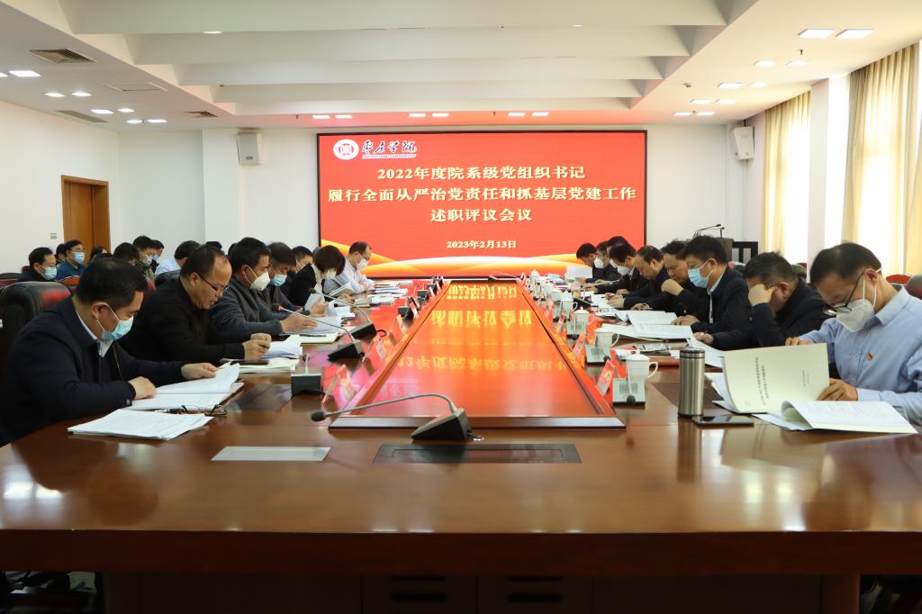 根据省委办公厅、省委组织部有关通知精神和省委教育工委工作要求,2月13日下午,永利官网在综合楼三楼会议室召开2022年度院系级党组织书记履行全面从严治党责任和抓基层党建工作述职评议会议,深入学习贯彻习近平新时代中国特色社会主义思想和党的二十大精神,进一步压实各级党组织书记履行全面从严治党责任,推动全面从严治党向基层延伸,切实提高党的建设质量。校党委书记曹胜强主持会议并讲话,校领导李文喜、曾宪明、李目海、路绪剑、丰雷、安涛、张昌林、林勇出席会议。相关职能部门负责人、全体院系级党组织书记、市级以上“两代表一委员”、部分党支部书记和基层党员群众代表等参加会议。