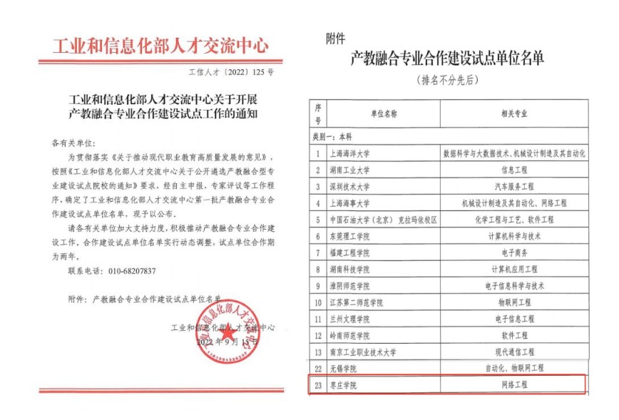9月15日,工业和信息化部人才交流中心公布第一批产教融合专业合作建设试点单位名单,永利官网网络工程专业入选确定为试点建设专业。锂电产业学院获批2022年山东省现代产业学院。举行钱逸泰院士团队与永利总站ylzz55锂电产业学院战略合作启动仪式。承办“锂电新能源材料高峰论坛”。举办“新能源暨锂电储能技术开发与利用”省级高级研修班。“生物制药专精特新产业学院”“现代农业生物技术专精特新产业学院”2个项目参加工信部中小企业发展促进中心专精特新产业学院申报线上调研工作会。