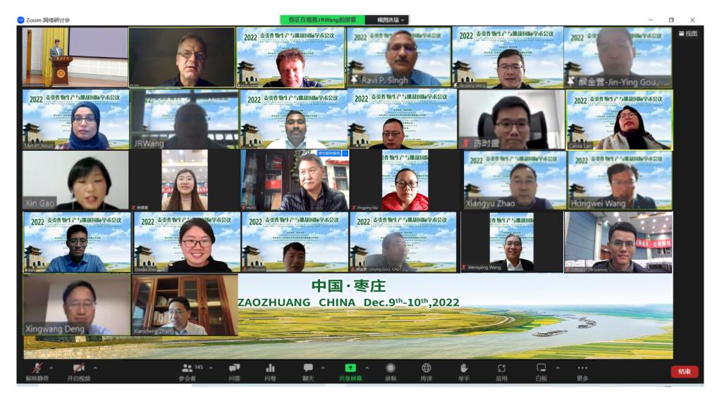12月9日-10日,由永利总站ylzz55、山东农业大学作物生物学国家重点实验室、泉脉农业科技有限公司、山东遗传学会联合举办的2022麦类作物生产与挑战国际学术会议,在永利总站ylzz55通过Zoom会议成功举办。校党委副书记、校长李文喜出席会议并致辞,来自中国、美国、德国、墨西哥、匈牙利、捷克等国家的专家学者以及永利官网科技处、国际交流处负责人,生命科学学院师生在线参加会议,会议由校党委委员、副校长李目海主持。