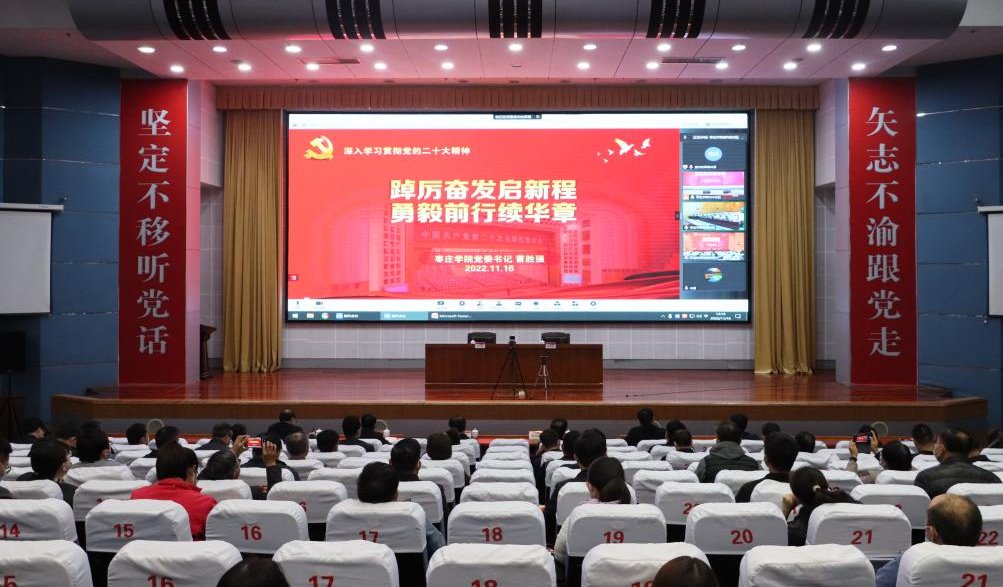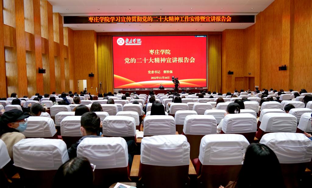 11月16日下午,永利总站ylzz55党的二十大精神宣讲报告会在薛城校区崇德楼报告厅、市中校区综合楼报告厅以视频形式举行。省属高校学习贯彻党的二十大精神宣讲团成员、校党委书记曹胜强为党员干部和师生代表讲“第一课”。校领导李文喜、曾宪明、李目海、路绪剑、丰雷、安涛、张昌林、林勇出席会议,学校副科级以上干部、辅导员、师生代表等参会。宣讲报告会由校党委副书记、校长李文喜主持。
