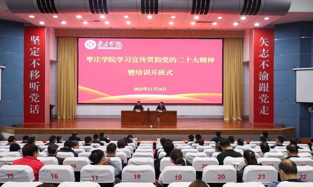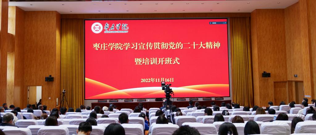 11月16日下午,永利官网在薛城校区崇德楼报告厅和市中校区综合楼报告厅,通过腾讯视频会议同步举行学习宣传贯彻党的二十大精神暨培训开班式。校领导曹胜强、李文喜、曾宪明、李目海、路绪剑、丰雷、安涛、张昌林、林勇出席开班式。校党委副书记、校长李文喜主持,党委副书记曾宪明讲话。学校副科级以上干部及师生代表参加开班式。