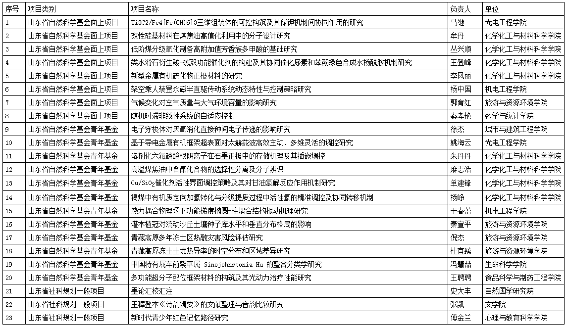 10月9日,2022年度山东省自然科学基金项目立项资助公示结束。永利官网共获批20项省自然科学基金项目,其中面上项目8项、青年项目12项,获批资助经费260万元,创历史新高。此前,学校已获批3项山东省社会科学规划项目,获批资助经费12万元。