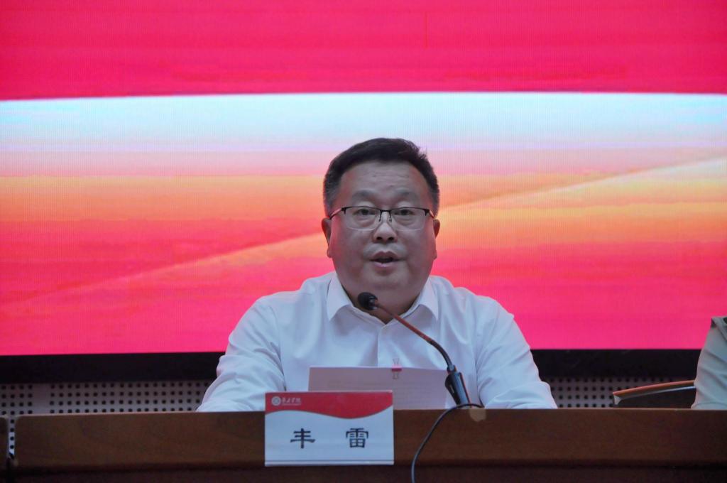 丰雷为大学生军训教官团授旗并进行动员讲话。他指出,学生军训是培养社会主义事业建设者和接班人的战略工程,是落实立德树人根本任务、实现强军目标的重要途径,教官是发挥军训育人功能的强劲引擎,是筑牢学生国防观念和组织纪律性,培养学生艰苦奋斗、坚毅不拔精神的关键所在。为切实做好新生军训工作,丰雷对全体教官提出三点希望:一是要坚韧笃行,传承精神。要传承军人精神、雷锋精神和自训教官精神,建好军训队伍,保质保量完成“掌握基本军政技能,加强组织纪律性,增强爱国拥军意识”的军训任务。二是要履职尽责,榜样示范。要与全体新生同学一道,进一步认识军训的意义,增强国防观念和国家安全意识,培养艰苦奋斗、吃苦耐劳的作风,为新生们上好大学的“第一堂课”。三是要科学训练,圆满安全。要关心关爱受训学生,充分调动学生军训的积极性,拓展学生军训的综合育人功能。