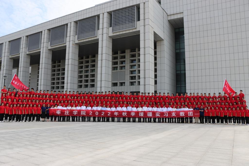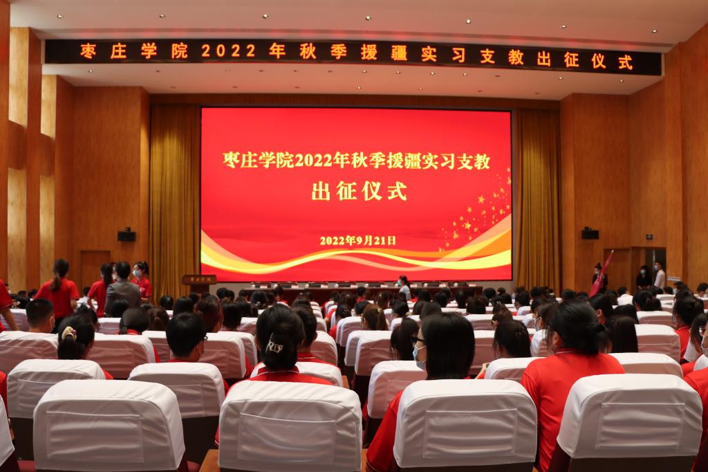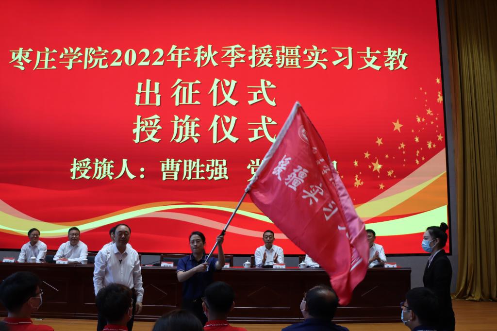 9月21日早上,永利官网在薛城校区崇德楼报告厅举行2022年秋季援疆实习支教出征仪式。校党委书记曹胜强出席并讲话,校领导曾宪明、李目海、路绪剑、丰雷、安涛、张昌林、林勇出席仪式。办公室、教务处、学生工作处、团委等部门负责人,相关二级学院党政负责人,以及2022年秋季援疆实习支教团全体师生共300余人参加出征仪式。仪式由党委副书记曾宪明主持。