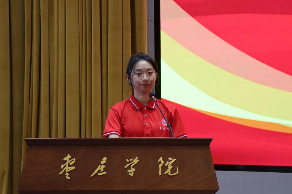 心理与教育科学学院学生李小凡代表实习支教团学生发言,感谢学校给予的宝贵机会,让她们这样的枣院学子踏上西部热土,去实现自己炽热的教育情怀,为新疆的建设、发展和人才培养贡献自己的智慧和力量。她代表全体支教团同学郑重承诺:坚定政治方向,牢记“兼爱、尚贤、博物、戴行”的校训,自觉遵守国家民族政策,尊重少数民族风俗习惯,积极融入当地,不忘教育的初心使命,以争做“四有好老师”为目标,充分利用支教舞台,在实践中积累经验,丰富阅历、磨炼意志、完善自我,奉献社会。