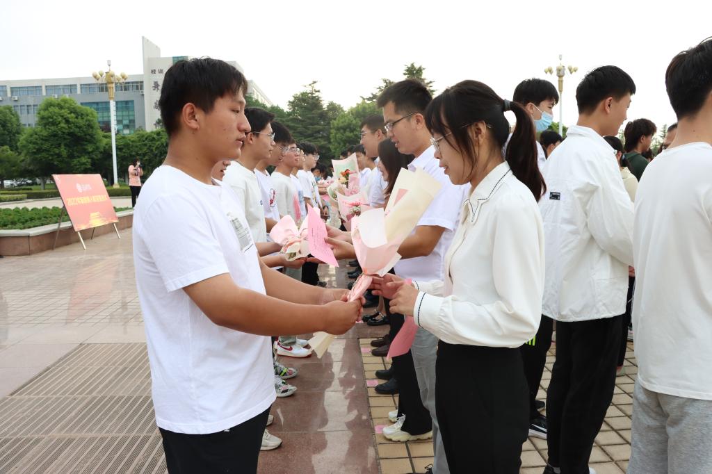 信息科学与工程学院2020级学生丛铭江代表学校莘莘学子,在演讲中满含深情表达了对全校教师的诚挚感激和真诚祝福。伴随着音乐《感恩老师》,学生们手捧学校精心定制的鲜花,向老师们深深鞠躬,并满怀深情地问候道:“老师,您辛苦啦!祝您教师节快乐!”花香情浓、祝福飞扬,一束束鲜花,一声声问候,表达着对老师的节日祝福,让老师们感受到了职业幸福,也教会学生懂得感恩,尊重老师。
