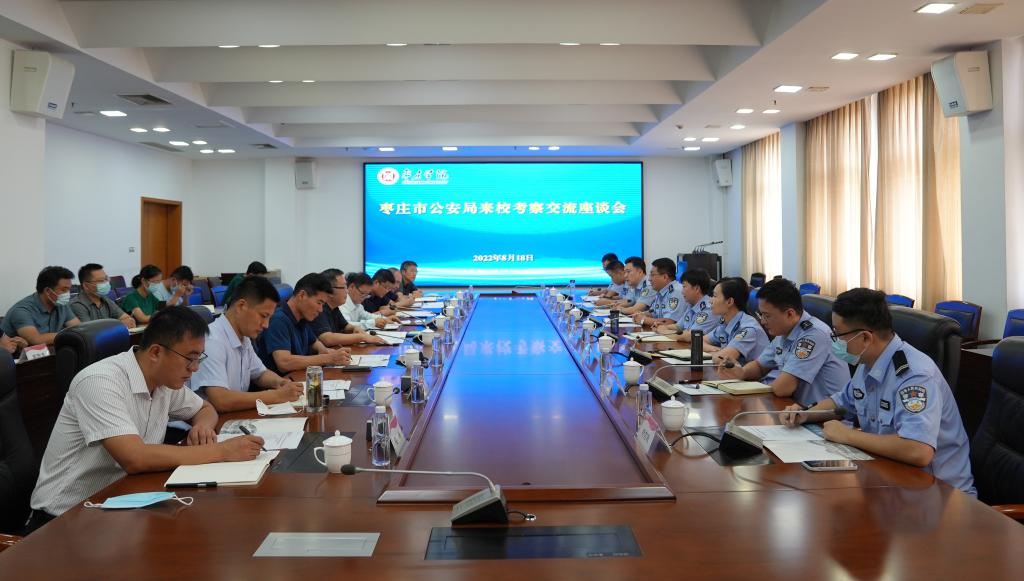 8月18日,枣庄市公安局情报处处长顾旭光一行8人来校考察交流,双方在市中校区综合楼三楼会议室召开了座谈交流会。校党委委员、副校长丰雷,校党委委员、宣传部部长张昌林出席座谈会。保卫处、信息科学与工程学院、马克思主义学院负责人及部分教师参加座谈。座谈会由丰雷主持。