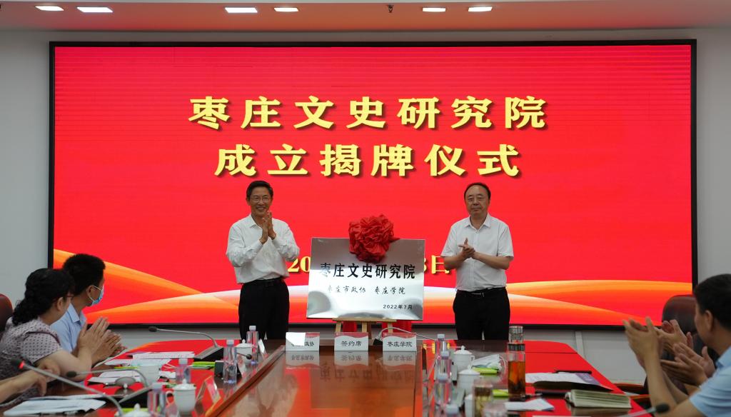 曹胜强与张兵共同为枣庄文史研究院揭牌。