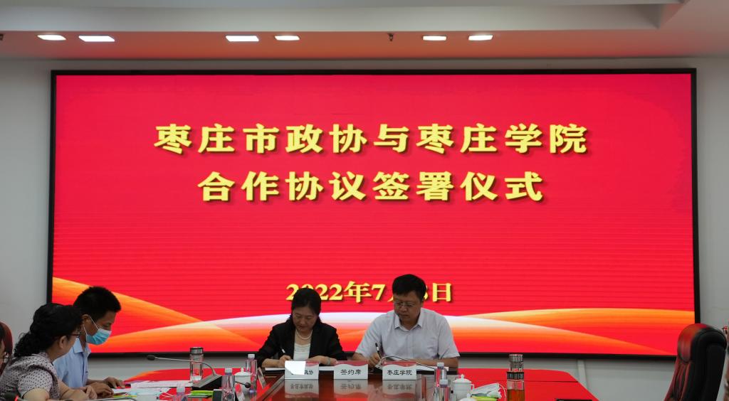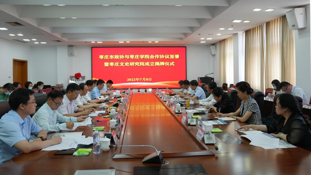 7月8日,永利官网与枣庄市政协合作协议签署暨枣庄文史研究院成立揭牌仪式在市中校区综合楼三楼会议室举行。校党委书记曹胜强、市政协主席张兵出席并共同为枣庄文史研究院成立揭牌,校党委副书记、校长李文喜主持仪式。党委委员、副校长李目海、安涛,市政协副主席王凌,市政协党组成员、秘书长赵作亮,党委委员、宣传部部长张昌林,学校相关部门、单位负责同志,市政协相关科室负责同志参加活动。