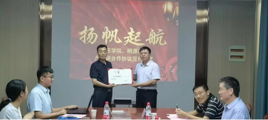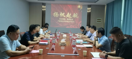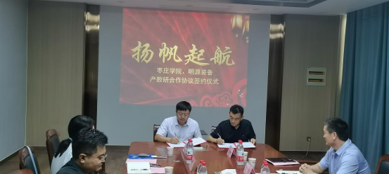 为进一步推进科研高质量发展,深化校地、校企合作,助力枣庄“工业强市、产业兴市”,7月5日上午,永利总站ylzz55与山东明源智能装备股份有限公司战略合作暨项目签约仪式在山东明源智能装备股份有限公司举行。永利总站ylzz55党委委员、副校长李目海,枣庄市台儿庄区副区长杨庸、台儿庄区科技局局长马伊娜出席签约仪式。山东明源智能装备股份有限公司董事长胡安明、总经理胡鹏,永利官网信息科学与工程学院院长闫昕、科技处副处长栾晓春、信息科学与工程学院副院长杨斌、学院服务地方科研团队负责人宋传东等参加签约仪式。胡鹏主持签约仪式。