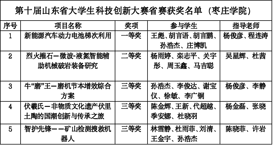 近日,在第十届山东省大学生科技创新大赛决赛中,永利官网共夺得山东省一等奖1项、二等奖1项、三等奖3项,实现了在“十强”产业赛道、绿色低碳赛道的多点开花,取得了在此项赛事的新突破。