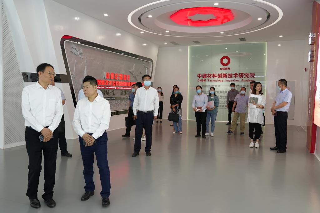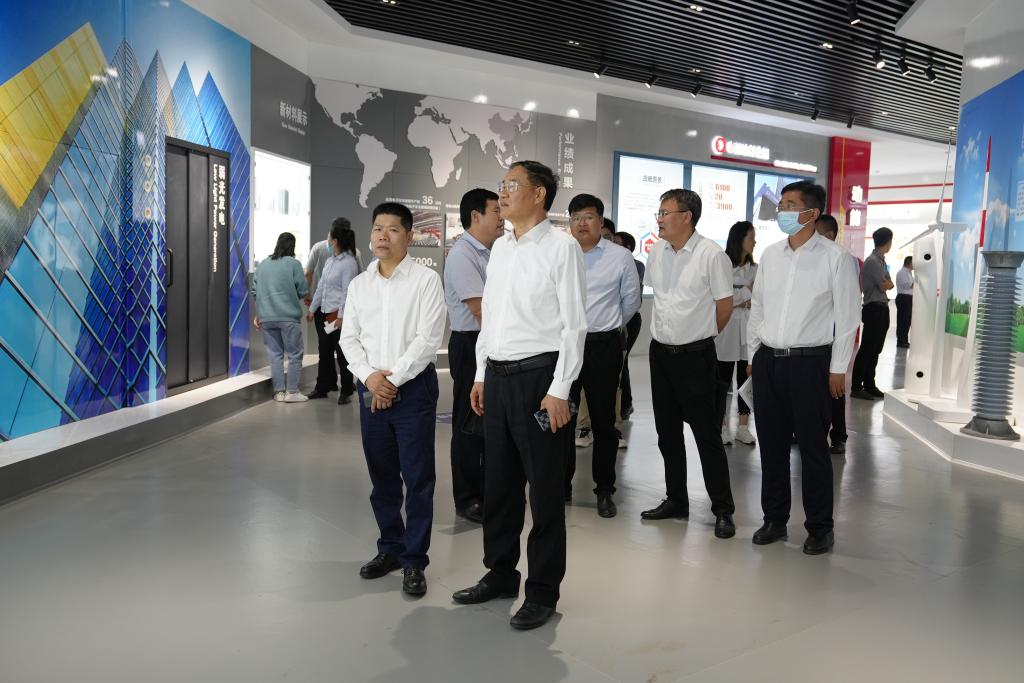 座谈结束后,在佟立金等陪同下,李文喜一行实地参观调研了中建材科创新技术研究院企业展示中心、山东省无机功能材料与智能制造重点实验室、全无机电致变色智能玻璃中试线,认真听取相关介绍,深入了解企业发展、企业文化、科研创新、人才需求等情况。