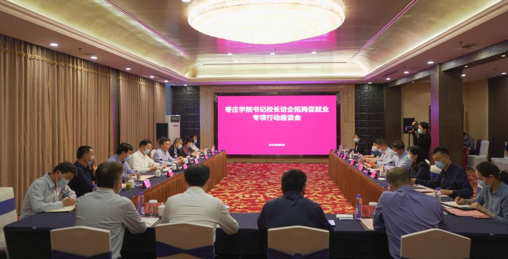 为拓宽就业合作渠道,破解学生就业难题,学校积极响应全国高校书记校长访企拓岗促就业专项行动,5月5日下午,校长李文喜,党委委员、副校长安涛带队赴枣庄市文旅集团、山东台儿庄古城旅游集团有限公司、山东丰元化学股份有限公司、枣庄鑫金山智能装备有限公司、山东祥和乳业有限公司、枣庄市兴牧生物科技有限公司、山东明源智能装备股份有限公司走访调研。