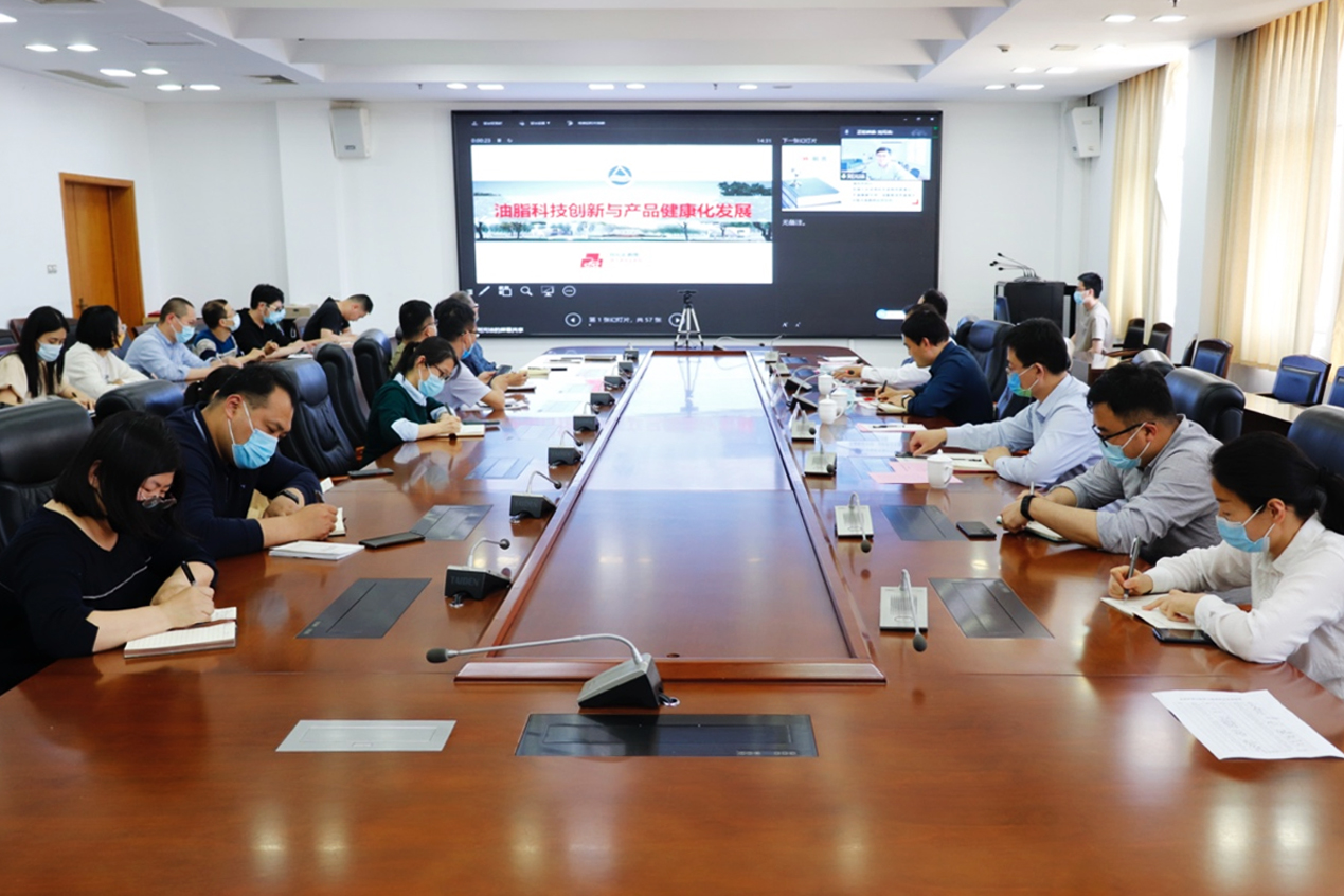 刘元法教授以“油脂科技创新与产业健康化发展”为题作报告。报告从食品工业的现状与展望、食用油供给情况、食用油安全问题、食用油营养基础和食用油加工情况等方面展开,分析了食品工业发展面临的挑战和未来发展的主要任务,展示了江南大学食品学院在食品科学与工程领域研究的大量成功案例,为油脂科技创新及产业发展提出了可行的建议和方案。刘教授指出食品人要瞄准国际前沿和国家战略,要面向人类健康,从传统食品走向未来食品,从单一学科走向交叉学科,打通应用基础研究、共性技术研究和产业应用转化产业链,找准科研切入点,在服务国家战略发展中实现自己的梦想。在交流互动环节,刘教授在线上与我院师生进行了深入交流,就师生提出的问题一一为大家答疑解惑。