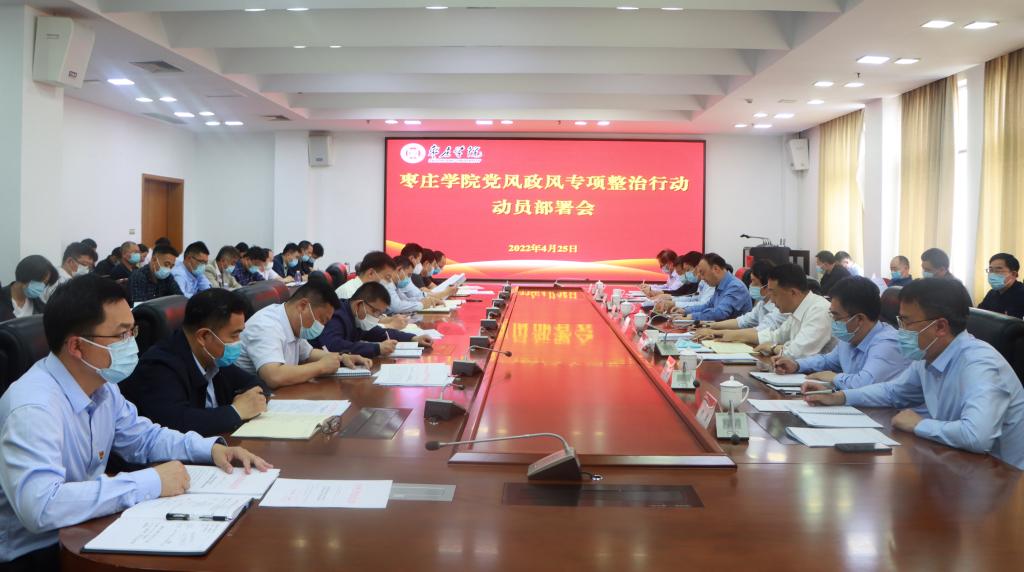 4月25日下午,永利官网在市中校区综合楼三楼会议室召开党风政风专项整治行动动员部署会。校党委书记、党风政风专项整治工作领导小组组长曹胜强主持会议并讲话,校领导曾宪明、李目海、路绪剑、丰雷、安涛、张昌林、林勇出席会议。各部门、单位负责人参加会议。