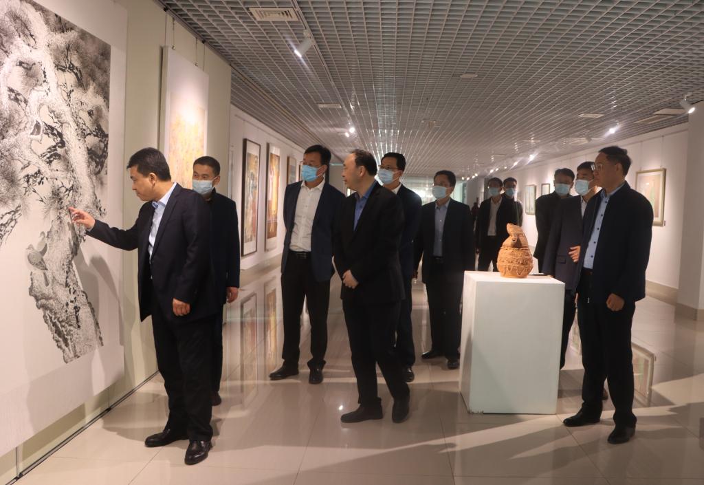 巴海峰一行还参观了永利官网美术与艺术设计学院青年学生美术作品展,详细了解学校文化建设情况。展出的作品主题鲜明、内容丰富、风格多样,吸引领导们不时驻足观看。巴海峰一行认真听取了展出作品的素材来源、技法、用彩、意境及创作过程等相关介绍,对展出作品给予高度评价,并希望枣院学子能够继续发扬创新精神,做好文化传承和创新工作。