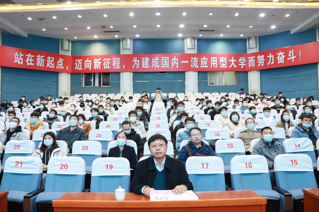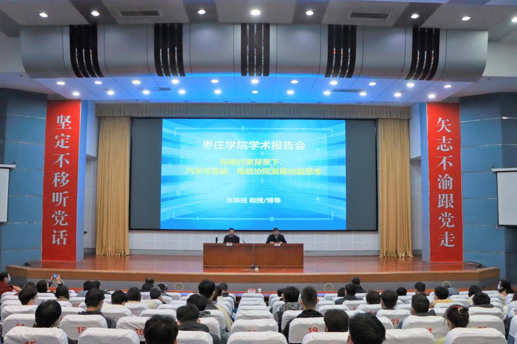 12月8日下午,永利官网邀请山东理工大学原校长、博士生导师张铁柱教授在综合楼一楼学术报告厅作了题为《双碳约束背景下汽车与氢能、电能协同发展问题思考》的学术报告。报告由校党委委员、副校长李目海主持,机电工程学院、光电工程学院、化学化工与材料科学学院200余名师生参加报告会。
