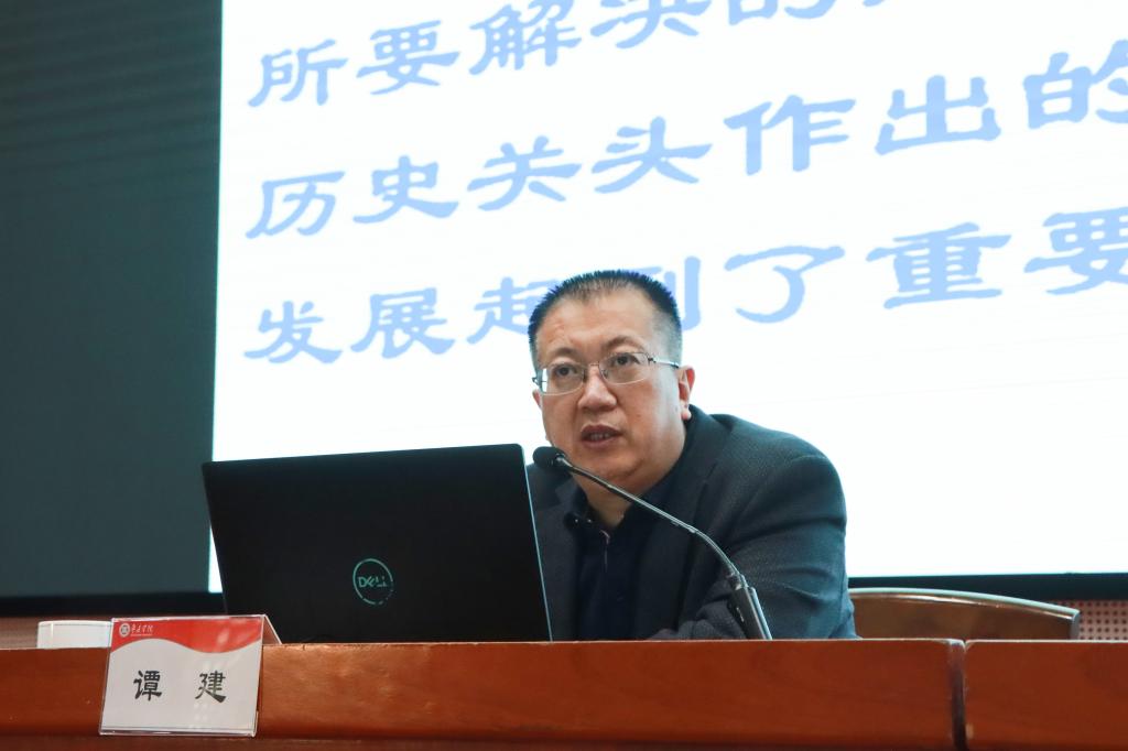 谭教授以“奋斗百年路 启航新征程 ——‘党的十九届六中全会’精神解读”为题,从“重大意义、重大成就、历史经验、不懈奋斗”四个方面对六中全会精神进行了系统阐述和深刻解读。谭教授指出,党的十九届六中全会从党和国家事业发展的战略全局出发,深入研究党领导人民进行革命、建设、改革的百年历程,全面总结党从胜利走向胜利的伟大历史进程、为国家和民族建立的伟大历史功绩,审议通过了《中共中央关于党的百年奋斗重大成就和历史经验的决议》,这是党的十九届六中全会的重要历史贡献。
