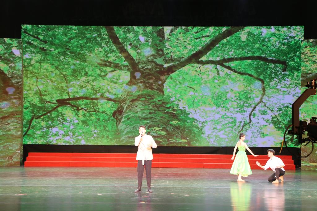 晚会分《薪火传承 大道健行》和《家国情怀 筑梦未来》两个篇章,通过音乐情景剧、配乐朗诵、歌舞等多种形式,沉浸式、立体化展现了学校与国家同呼吸共命运的历史发展与文化品性,讴歌学校半世纪历史荣光,激励新时代枣院人传承永利总站ylzz55精神、勇立时代潮头、再创新的辉煌。