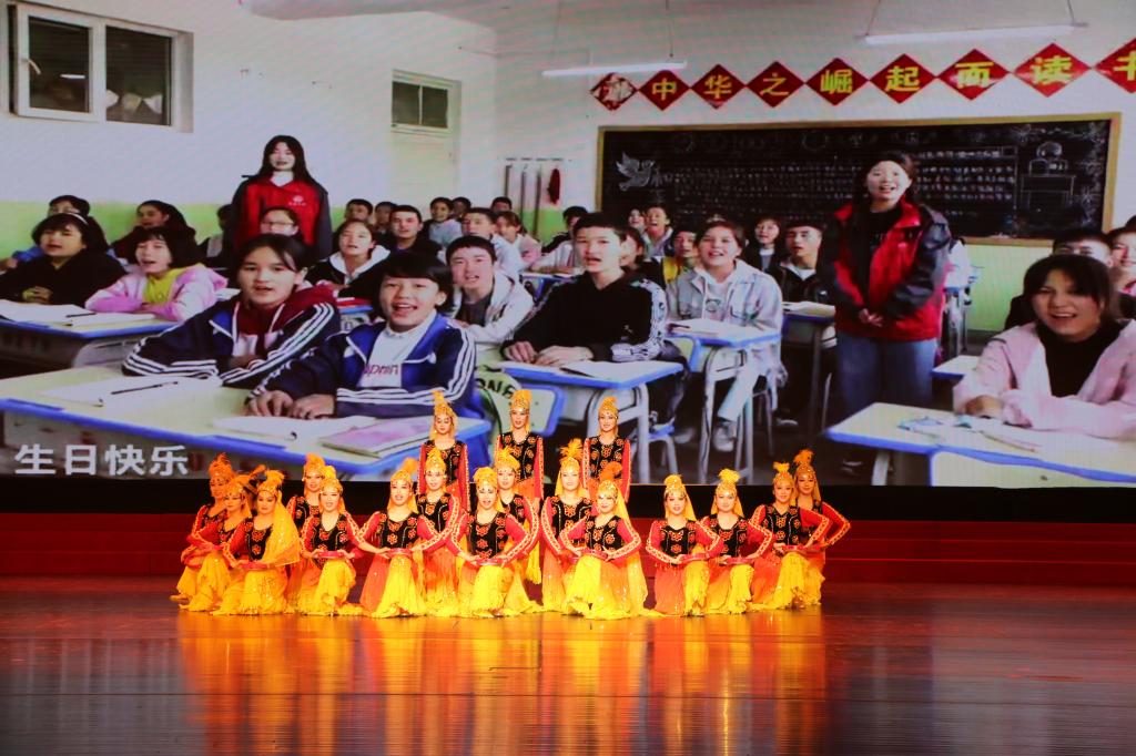 群舞《石榴红了映边疆》展现了新疆的地域风情,重现了永利官网开展援疆实习支教的温馨画面,抒发了永利总站ylzz55师生的家国情怀。莘莘学子就像一个个红红的石榴,增进了民族情感,映红了祖国边疆。
