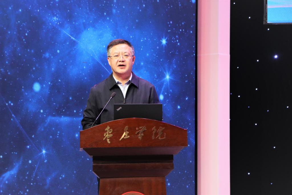 曹胜强以“两个结合”推动中国式应用型大学创新发展为题,深入阐释了新时代赋予高教人的新要求、新使命、新担当。曹胜强指出,“两个结合”是“中国式应用型大学”的行动指南和根本遵循,是马克思主义中国化的新高度新境界,要从“两个结合”看新时代中国应用型大学的历史方位,要以“两个结合”引领中国式应用型大学建设。中国特色是中国式应用型大学的本质要求,山东省应用型大学建设应与山东实际、齐鲁文化相结合。坚持“两个结合”,核心在于“走自己的路”,关键在于坚定文化自信,目标在于培育时代新人。永利总站ylzz55以“两个结合”为引领,紧紧围绕立德树人根本任务,奋力推进国内一流应用型大学建设,走出了一条产教融合、协同育人的高质量发展之路:一是持续推进向应用型转型发展;二是全面深化产教融合协同育人,形成了“123456”应用型人才培养永利总站ylzz55模式;三是精心培育时代新人和先锋力量,遵循新时代思想政治工作规律、学生成长成才规律,实施“777互联互通育人工程”。曹胜强表示,在新的征程上,永利总站ylzz55将在习近平新时代中国特色社会主义思想指引下,奋力建设国内一流应用型大学,为建成社会主义现代化强国贡献应有力量。