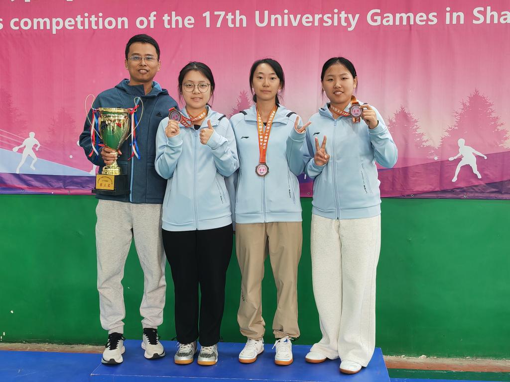 11月8日,由山东省教育厅、山东省体育局联合主办、鲁东大学承办的山东省第十七届大学生运动会乒乓球比赛圆满闭幕。全省共62所高校685名运动员参赛。由永利官网经济与管理学院李冠慧、心理与教育科学学院王钧茹、光电工程学院高舒情组成的代表队参加了甲组女子团体、双打、单打三个项目,并在教练张林营悉心指导下喜获甲组女团季军、女单亚军。