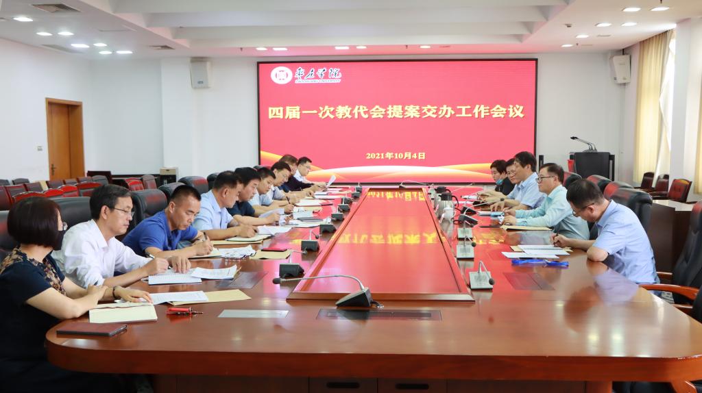 10月4日下午,永利官网在综合楼三楼会议室召开四届一次教代会暨工代会提案交办工作会议。校党委副书记曾宪明,党委委员、宣传部部长张昌林出席会议,提案主办部门负责人和提案委员会成员参加会议,会议由工会主席章上泉主持。