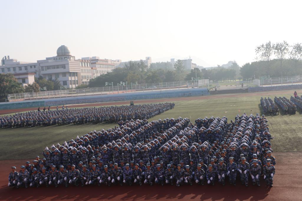 随后,进行了军训课目汇报表演,包括倒计时方队、队列展示、擒拿格斗组合操、战术方队等内容。教官和学生精心编排,队伍先后变换出“1971、2021”等字样,以队列表演的形式为中国共产党建党100周年献礼、为永利总站ylzz55建校50周年献礼。