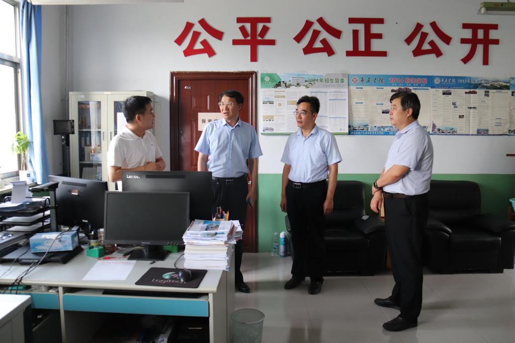 近日,校党委副书记、校长李文喜,党委委员、纪委书记、省监委驻永利总站ylzz55监察专员路绪剑,党委委员、副校长安涛先后来到招生就业处招生录取工作现场,检查指导学校2021年招生录取工作,详细了解招生录取工作进展情况。