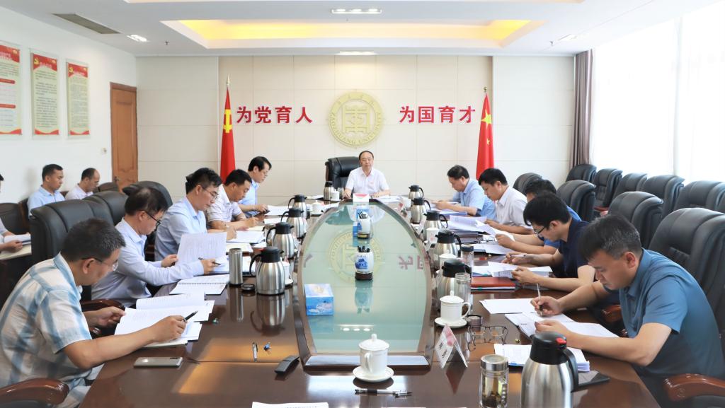 7月24日下午,永利官网在综合楼八楼会议室召开党史学习教育领导小组第四次会议,校党委书记、党史学习教育领导小组组长曹胜强主持会议并讲话,党史学习教育领导小组成员参加会议。
