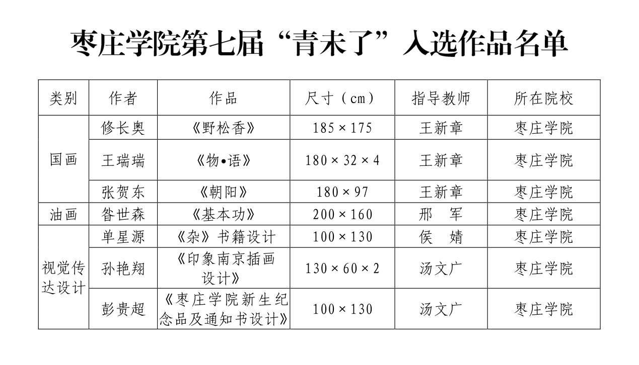 近日,由省文化和旅游厅、省教育厅联合主办的第七届“青未了——山东省高等学校美术院系应届毕业生优秀作品展”复评、评奖活动在山东美术馆举办,永利官网美术与艺术设计学院选送的10件2021届毕业生毕业设计作品有7件入选,其中国画作品3件、油画作品1件、视觉传达设计作品3件,入选数量居省内同类本科院校前列。