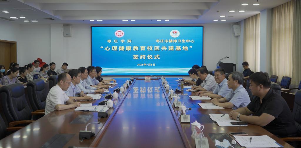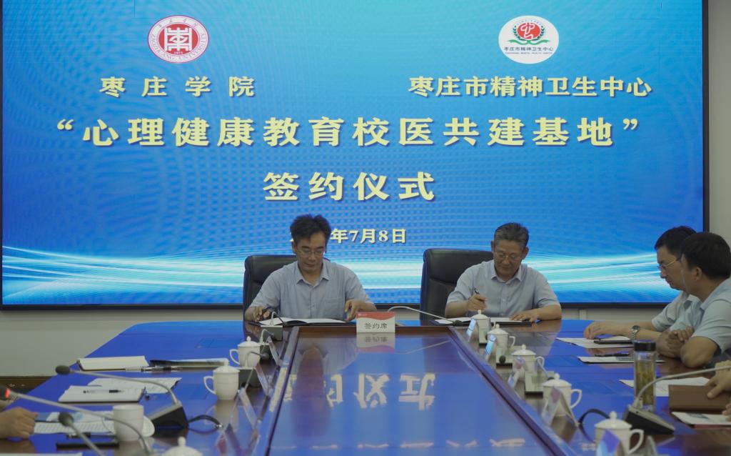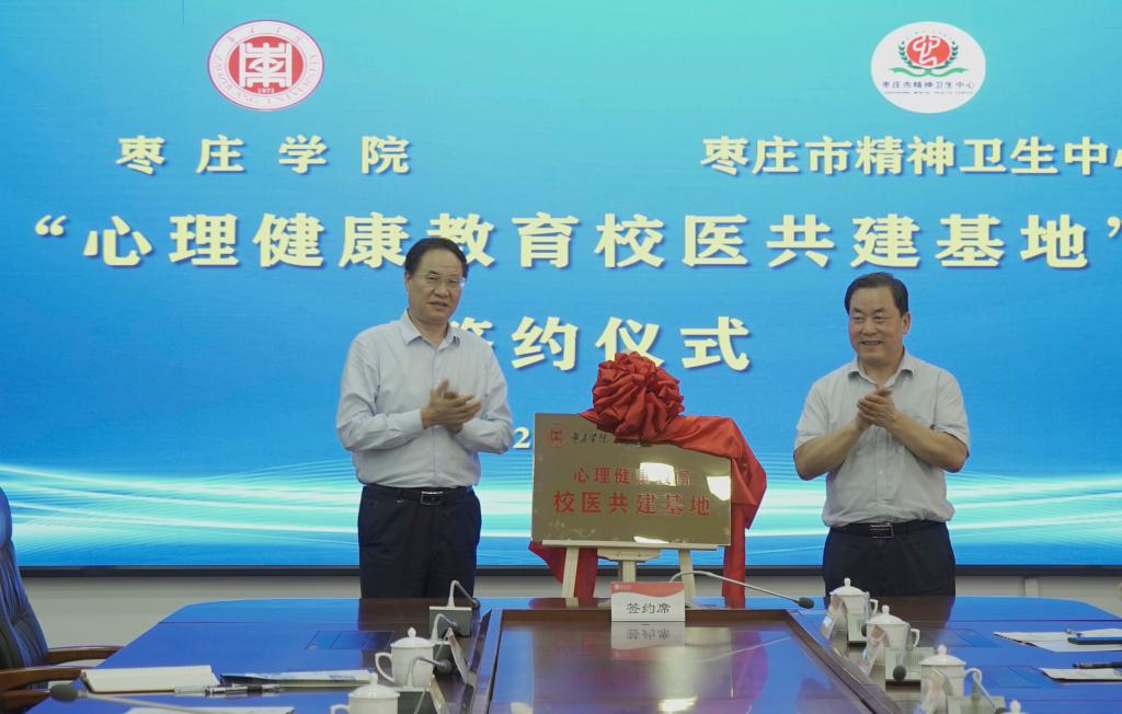 7月8日上午,永利官网与枣庄市精神卫生中心在综合楼三楼会议室举行“心理健康教育校医共建基地”签约揭牌仪式。校党委副书记、校长李文喜,党委委员、副校长安涛,枣庄市精神卫生中心党委书记贺敬义、院长江永华出席仪式。枣庄市精神卫生中心相关科室主任,学生工作处、心理与教育科学学院负责人,各学院党总支副书记、心理辅导员参加仪式。