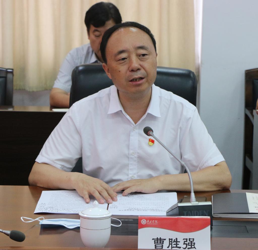 曹胜强指出,全面学习贯彻习近平总书记的讲话精神,就是要坚持党对学校工作的全面领导,全面贯彻党的教育方针,把党的领导落实到办学治校的全过程、各方面,树牢“四个意识”,坚定“四个自信”,做到“两个维护”;就是要弘扬伟大建党精神,赓续红色血脉,在人才培养过程中擦亮红色这个最鲜亮的底色,为党育人、为国育才,培养有志气、骨气、底气的青年,培养能够担当民族复兴大任的时代新人;就是要坚守初心使命,勇于担当作为,全心全意为师生办实事、解难题,努力把学校办成让党放心、让人民满意的大学,推动学校高质量发展。