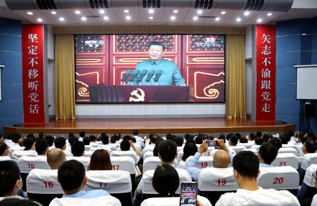 习近平总书记在讲话中指出,今天,在中国共产党历史上,在中华民族历史上,都是一个十分重大而庄严的日子。我们在这里隆重集会,同全党全国各族人民一道,庆祝中国共产党成立一百周年,回顾中国共产党百年奋斗的光辉历程,展望中华民族伟大复兴的光明前景。习近平代表党和人民庄严宣告,经过全党全国各族人民持续奋斗,我们实现了第一个百年奋斗目标,在中华大地上全面建成了小康社会,历史性地解决了绝对贫困问题,正在意气风发向着全面建成社会主义现代化强国的第二个百年奋斗目标迈进。这是中华民族的伟大光荣!这是中国人民的伟大光荣!这是中国共产党的伟大光荣!