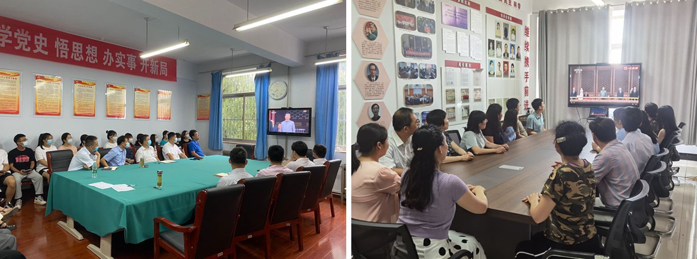大会直播结束后,很多单位立即组织讨论,畅谈学习体会。习近平总书记的重要讲话, 在师生中引起了强烈反响。大家一致认为,总书记站在历史和全局的高度,全面回顾我们党100年波澜壮阔的奋斗历程和伟大历史贡献,凸显了强大的政党自信、道路自信、理论自信、制度自信、文化自信,讲话鼓舞人心、催人奋进。大家纷纷表示,要积极响应党中央的号召,坚持真理、坚守理想,践行初心、担当使命,永远把伟大建党精神继承下去、发扬光大;同时要以“七一勋章”获得者为榜样,增强“四个意识”、坚定“四个自信”、做到“两个维护”,更加紧密地团结在以习近平同志为核心的党中央周围,永远信党爱党为党,在各自岗位上顽强拼搏,推动学校事业再上新台阶。